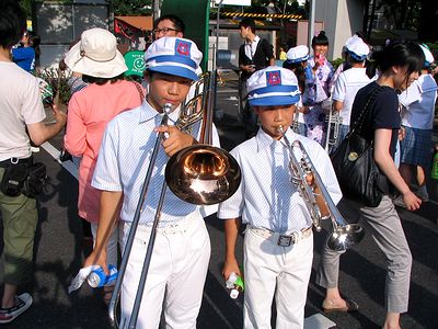 良い天候のもと、天領夏祭りがおこなわれました。三男も加わった西中学校の吹奏楽部も上手にマーチングを披露していました。曲は「にんじゃりばんばん」と「風になりたい」でした。三男は学校に戻って楽器をかたずけてから帰宅して、夕食のカレーを急いで食べてから夜店でにぎわうお祭りに次男と一緒に出かけます。