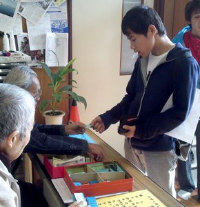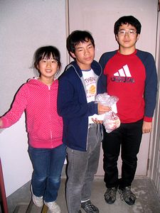 昨日は三男の13歳の誕生日でした。お祝いにケーキをもらって(写真左)、夕食後に家族でいただきました。今日は教会のバザーでした(写真右)。子どもたちは、みな良くお手伝いしてくれました。写真は、三男がバザー券(食券に相当するもの)を買っているところです。