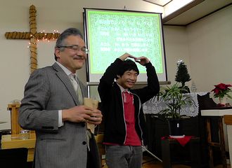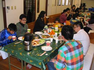 クリスマス礼拝と、そのあとにクリスマスランチを一緒にいただきながらファミリークリスマス会でした。教会員40名ほどで賛美したりゲームしたり、またネパールから戻られている松浦先生のお話も聞いて楽しく過ごした1時間半でした。