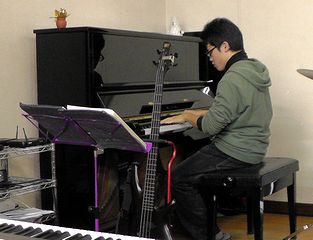 長男が参加しているバンドが岡山市内のライブハウスで演奏しました(写真)。半ば強制で(お情けで?)購入した入場券2枚で、おかあさんと三男が聞きに行ってきました。三男にとっては初めてのライブハウスです。おとうさんは岩淵まこと・由美子夫妻のコンサートが倉敷アイビースクエアで開かれていたので、そちらに行ってきました。こちらは教会関係の方がたくさん来ていました。