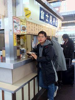 おかあさんと次男が青春18きっぷを使って平塚/茅ヶ崎に向かいました。途中の静岡駅で9分停車する間にホームの立ち食いソバをいただくのが、この移動では子どもたちの定番になっています。今回は次男ひとりですけど(写真左)。平塚に夕方6時半過ぎに着いて、まずは平塚のおばあちゃんと一緒に夕食をしました(写真右)。