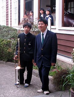 昨日は更新できずに失礼しました。写真は転勤する先生の送別(一昨日)に次男が中学校に出かけた時の様子です。送別会での演奏を終わった三男と一緒に。