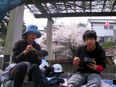 始業式が終わって帰宅した三男と一緒に、お弁当を持って近くの鶴形山に出かけて花見がてらのお昼としました。散り始めですが、まだまだ充分の桜が咲いていました。