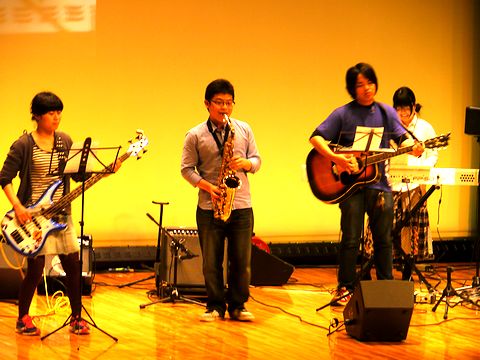 賛美集会ビクトリーで、今年も倉敷教会から若者バンドが出演・演奏しました。長男のサックスも板についてきました。一昨年の様子がこちらにあります。