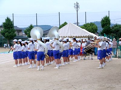 雨は降らず、中学校の体育会がおこなわれました。開会式で吹奏楽部はファンファーレと国歌を演奏しました(写真左上)。三男はクラス対抗ムカデ競走(リレー)に出て2位になりました。写真右上は競走後に使った道具を片づけているところです。総合でも学年で2位になり上機嫌です。
