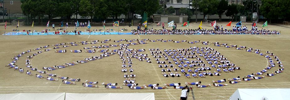 今月7日の体育会で三男たち2年生がつくった「和」の字です。現場のグランドレベルで見ていたほとんどの方々からは大きすぎて近すぎて、また角度の関係で「和」とは残念ながら認識できなかったようです。