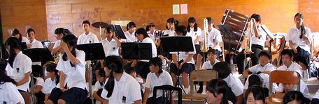 中学校の広報紙の取材で部活を訪れた際に音楽室で撮った練習開始前の一こまです。