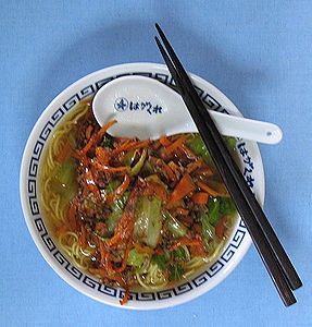 写真は長男がペルソナ3のHappyくじ(有料、税込800円)で当てたD賞の「はがくれ丼」のどんぶりにラーメンを盛ったところです。