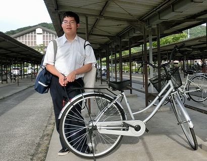 今日は高校で親+本人+担任+副担任による4者面談がありました。進路とかも、そろそろ本格的に考える時期になってきました。ただその前に、入学以来落ち気味の成績をまずどうするか、が課題です。でもこれは本人が自覚して勉強態度が少しずつでも変わってこないと、なんともならないと思います。写真左は面談後寄った部室にて、写真右は学校の自転車置き場でこの4月にデビューした自転車と、です。