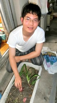写真は、台所の片隅で芽をだしたサツマイモをプランターに移しているところです、根付くでしょうか?