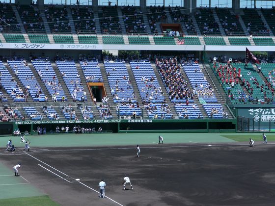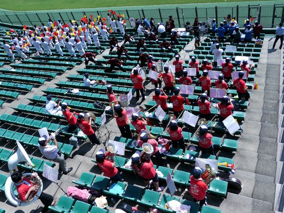 高校野球岡山大会の準決勝でした。長男は母校岡山理科大附属高校の応援に楽器を持って駆けつけてOBとしてブラスバンドに加わりました。理大附は9回に5点を取って見事な逆転勝利、明日は甲子園出場をかけた決勝になりました。