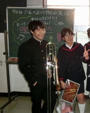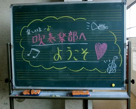 先週6日にあった小学校6年生による中学校訪問の時に活動した吹奏楽部と三男の様子です。