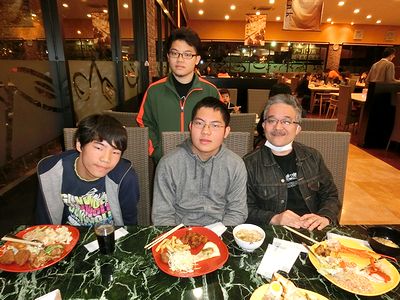 教会バザーでした(写真左と中)。次男、三男は学校が午前中あり、お昼過ぎに教会に来ることができました。今日は三男の14歳の誕生日です。希望によってワールドビュッフェで食べ放題の誕生日ディナーになりました(写真右、いずれも撮影はおかあさん)。一番たくさん食べたののが、本人でした。やはり中学生は、たくさん食べます。次男は食欲のピークは過ぎたようです。