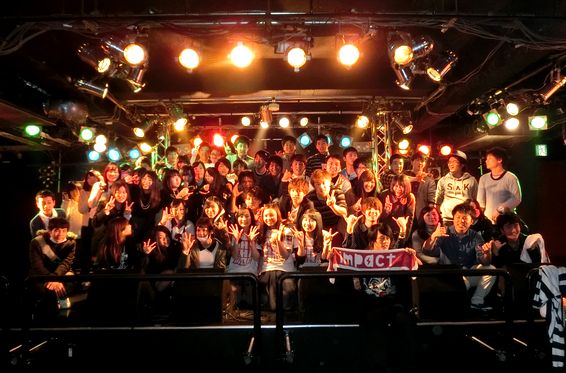 三男の中学校は7日に始業でその日に実力テスト、次男の高校は8日に始業でその日と翌9日にテストでした。どちらもテストが終わり今日は2人それぞれの部活が午前中にありました。長男は、地元大学生たちのバンドのライブに誘われて自分たちのバンドで出演です。自宅から自転車で5分くらいの近くのライブハウスです。夕方7時くらいの演奏をおかあさんと三男は聞きに行きました。出演者と聴衆一緒に記念撮影です。そういうのには興味がない次男は午後中昼寝していました。