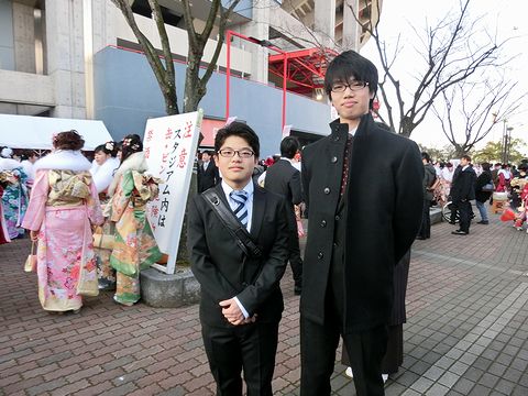 長男の成人式でした。倉敷の成人式はマスカットスタジアムで行われました。写真右は、中学校以来の友達と成人式会場で撮ったものです。成人まで守っていただいた神様に感謝です!