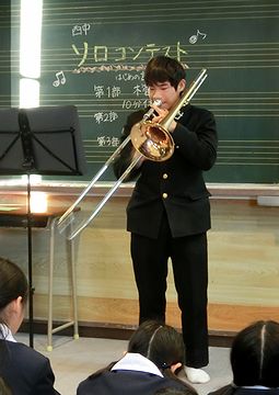 中学校吹奏楽部では本日、部員一人一人がソロ演奏する「わくわくソロコンテスト」が音楽室でおこなわれました。外部から音楽家を招いて評価してもらい優秀者を表彰しました。三男は上位3名には入りませんでした。