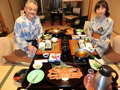 本日は結婚25周年の銀婚です。その記念におとうさんとおかあさんは昨晩から皆生温泉に1泊旅行に行き、カニのごちそうをいただいてきました。今日の午前中には境港の水木しげる記念館に寄ってきました。子どもたちは三人で留守を守って、夕食、朝食やゴミ当番を自分たちでやってくれました。本日帰宅すると長男はお花(花かご)をプレゼントしてくれました。