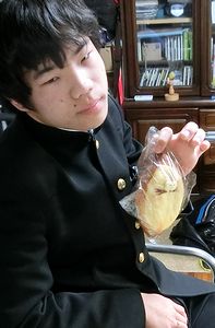 先週土曜日のバレンタインデー、同じ宿舎にすむコンドウ家から我が家の3人の子どもたちにクッキーが届けられました。お気づかい、ありがたいことです。三男が3兄弟を代表して受け取りました。