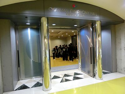 男子校の関西高校吹奏楽部の演奏会に、中学校の吹奏楽部男子部員がジョイントしてのコンサートが昨年に引き続き開かれました(昨年の様子はこちら)。三男は今年も参加して岡山シンフォニーホールでトロンボーンを吹いてきました。写真は倉敷西中学校、東中学校の部員たちがホールに入ったところです。