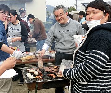 現在は大分で働いていらっしゃる木村医師ご夫妻が倉敷の礼拝に出席されたので、一緒に記念撮影をしました。教会のお昼はBBQでした。朝まで降っていた雨も礼拝後に上がり、外で皆でBBQをすることができました。三男は中学校の友達を誘いました。本人はこの後に、吹奏楽部員たちと県立倉敷南高校の演奏会を聞きに行くので制服を着ています。