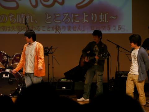 多くのキリスト教会が協力して賛美集会ビクトリーが今年も開催されました。去年の様子はこちらです。長男と三男は倉敷聖約キリスト教会賛美チームで舞台に登場です(写真)。三男はギターでデビューでした次男は部活のために参加できませんでした。