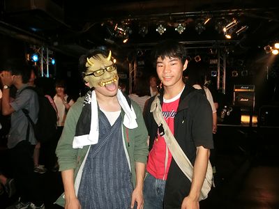 昨夕は長男(右の写真で般若の面をかぶっている)が加わっているバンドのライブコンサートがありました。部活終了後に三男は級友数名と一緒に聞きにいきました。