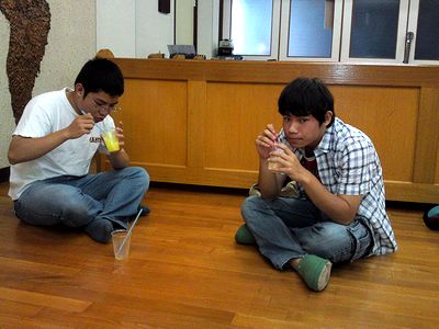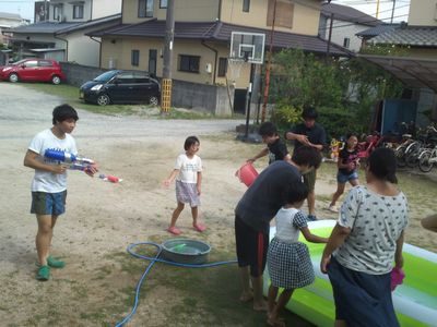 倉敷聖約キリスト教会の子どもたちの集会は、8月の5回の日曜日はスペシャル企画になります。賛美と礼拝のあと、先週は水遊びをしました(写真左)。今日はかき氷です(写真右)。小さめのコップですが三男は4杯も食べました。今のところ(午後10時過ぎ)お腹は大丈夫なようです。
