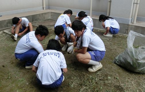 夏休み中ですが、中学校では今朝は一斉清掃(草抜き)ボランティア作業でした(写真)。昼間はまだ暑くなりますが朝は気温が20度くらいと過ごしやすく、外での作業には好適です。昨日は家庭科の保育実習があって、三男のクラスの生徒たちは近隣の保育園で幼児たちと触れ合ってきました。