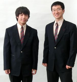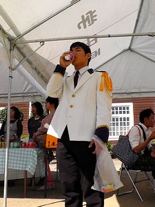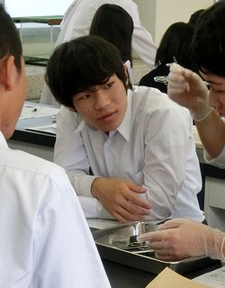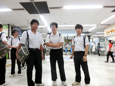 高校のオープンスクールで、昨日は岡山城東高校、今日は岡山理科大学附属高校に行ってきました。城東では昨年と同じく理科の体験授業に参加しました。部活動では、ビデオの編集などの活動もある放送部に興味を持った三男です。理大附属の方では、制服の試着コーナーがあって、ちょっと大きすぎる制服を着て記念撮影です(写真右)。