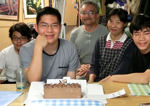 次男18歳の誕生日です。ケーキの前で家族そろって記念撮影です。ケーキに乗っているクマの砂糖菓子を、期待にたがわず欲しがった次男です。もちろん今日の主役ですから砂糖菓子はもらえました。そんな18歳ですが、今日から選挙権が与えられます。
