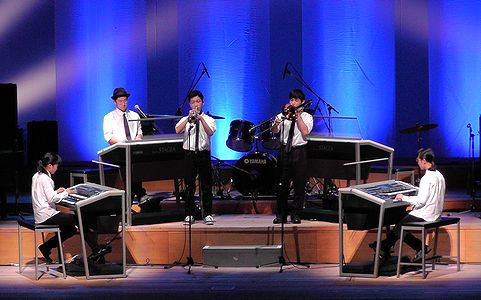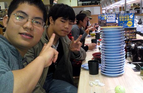 ヤマハエレクトーンフェスティバルのフリースタイル部門に参加した旧在籍生(=OB)である三男たちのグループです。エレクトーンフェスティバルに金管楽器が助っ人で入ったのが奏功したのかグループは金賞を受賞しました。夕食はお祝い(?)で回転ずしです。三男は20皿+寿司屋のラーメンまで食べて、おなかがいっぱいで帰路苦しかったそうです。長男はバンドの演奏で大阪まで行きました。
