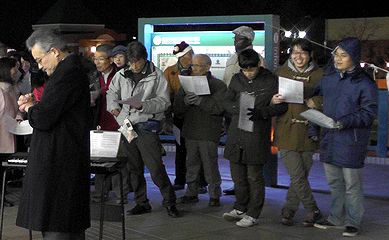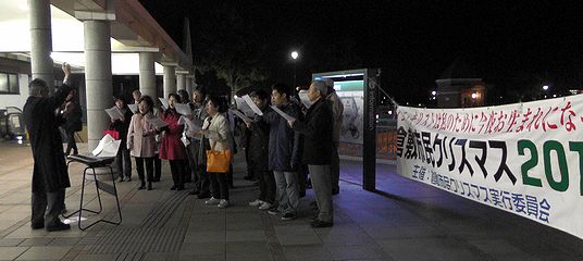 倉敷市民クリスマスの前日、倉敷駅北口で倉敷市内のキリスト教会有志で恒例のキャロリングがおこなわれました。次男、三男も加わって、きよしこの夜、諸人こぞりて、の2曲を賛美しました。