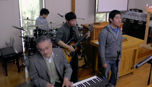 一昨日のクリスマス会で、子どもたち3人とおとうさんとバンドを組んで、クリスマス曲の「あらのの果てに」をジャズ風にアレンジしたものを演奏しているところです。