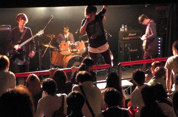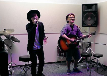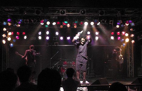 夜は長男(写真、般若の面)のやっているバンドのライブがありました。この1ヶ月間で3回目のライブです。