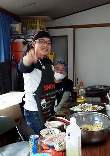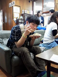 教会の春のバザーでした。たくさんの方が来てくれました。おとうさんと長男は焼きそば担当です。次男、三男もいろいろ手伝ってくれました。写真は休憩中、食事中のものですが。