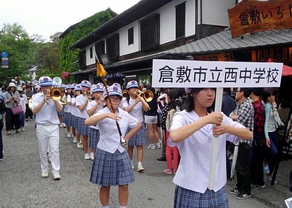 倉敷美観地区ではゴールデンウィーク恒例のハートランド倉敷が開かれ、さまざまなイベントが行われました。長男、次男、三男も昨年度まで倉敷西中学校吹奏楽部の一員としてパレードに参加していました。今年は吹奏楽部のパレードを見た三男は、待機場で帰りのバスを待つ後輩たちのところに行って労をねぎらっていました。