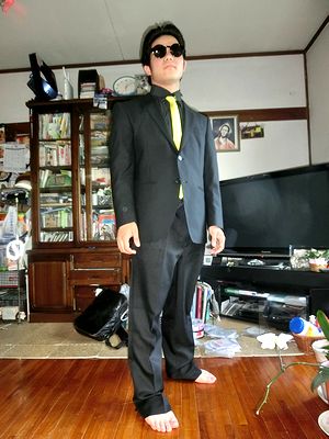 三男は高校の1年生の淡路島合宿で、チームでパーフェクトヒューマンを披露することになりました。その衣装をそろえました。まぁコスプレです。