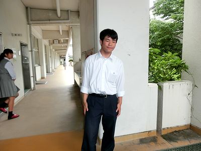 昨晩は雨が降りました。今日も曇天、かすかに雨が降るような天気でした。そのため今晩は天井も暖まっておらず、かなり過ごしやすい室温になっています。写真は昨日、高校の公開授業に出かけたおかあさんが休み時間に撮った三男の様子です。