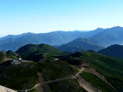 剣ヶ峰からコロナ観測所、槍ヶ岳、穂高連峰方面