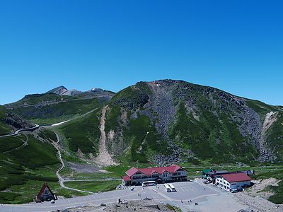 魔王岳園地から乗鞍畳平と剣ヶ峰の眺め