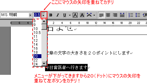 ★同様に範囲を選んで隣の窓 [MS 明朝] 横の▼をカチリと