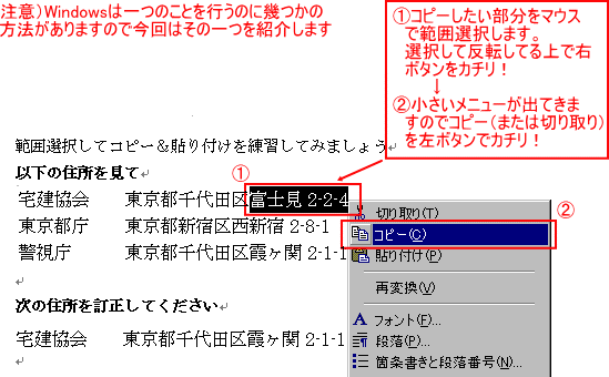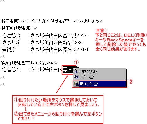 コピーまたは切り取りの操作が終わったら貼り付けの作業です