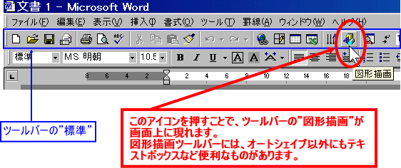 ツールバーを表示させましょう。”標準”のツールバーにあるアイコンをクリックすると表示されます。