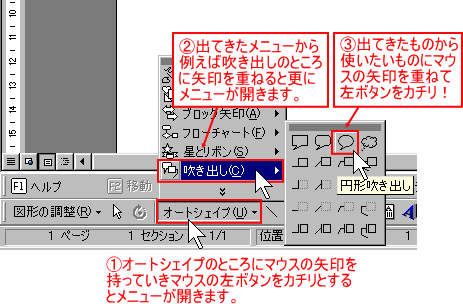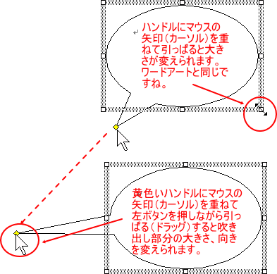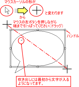 先ず、吹き出し(テキストボックスも同じ)が使いやすいように