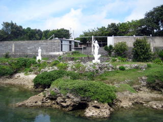 ビーチには謎のツイン銅像と、何やら同窓会モードのモニュメントがあった。