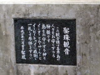 その巨木の入口に隠れるようにある「聖珠観音」。感謝する神様のお名前が何というか……。