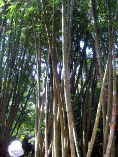 沖縄には珍しいとされる竹。たけのこも生えていて。小さな男の子が、なぜかたけのこと一緒に母親の被写体にされていた。どこかから持ち込まれて成長したものらしい。