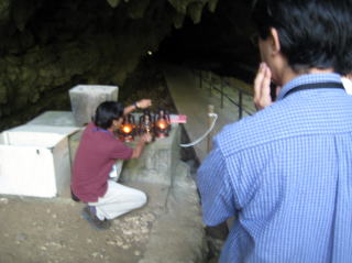 入口でツアーガイド氏がランタンを用意し、火をつける。こんなものが仕込んであったとは。