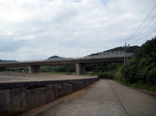 スウィフトは、イーフビーチから走ってきた県道を1本それて、海岸沿いの狭い道へ入る。おそらく旧道であろう。その旧道の上にかかる県道の大きな橋(右上)の下に……