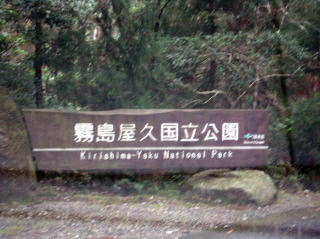 宮之浦より1周道路と一旦別れて進路を南に取り、山深いカーブだらけの坂道をどんどん上っていく。一瞬心配したのは雪だ。屋久島は山頂付近では亜寒帯の気候が見られる。亜寒帯というと北海道のそれだ。無論、白谷から山頂までまだまだ標高の差は大きいだろうが、空港など海沿いの標高の低い場所でも、すっかり本土の冬の寒さである。ってことは、標高がそれなりに上がる白谷付近では、万が一雪の可能性もあり、路面が危ないんじゃないかと心配したのだ。実際、宮之浦の入口の電光掲示板には「凍結注意」の文字もあったのだが、幸い細かい雨がぱらつく程度で、路面こそ濡れてはいたが、昼時ということもあろうか、さすがに凍るほどではなかった。